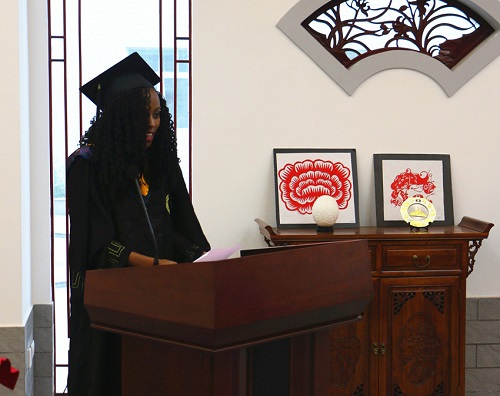 来自哈萨克斯坦、企业管理专业硕士研究生杰恩斯和来自肯尼亚、土木工程专业本科生伊丽莎白,代表来华留学毕业生发言,向母校和各位老师给予外国留学生无比深厚和无微不至的关怀、关爱和关心表示诚挚的感谢,毕业不仅意味着留学生完成了人生中的一段重要里程,也标志着他们即将带着深厚的“兰州理工大学”情怀走向新的历程,无论今后在何方工作,在兰州理工大学的学习生活的美好时光,是他们宝贵财富和难以忘却的记忆。