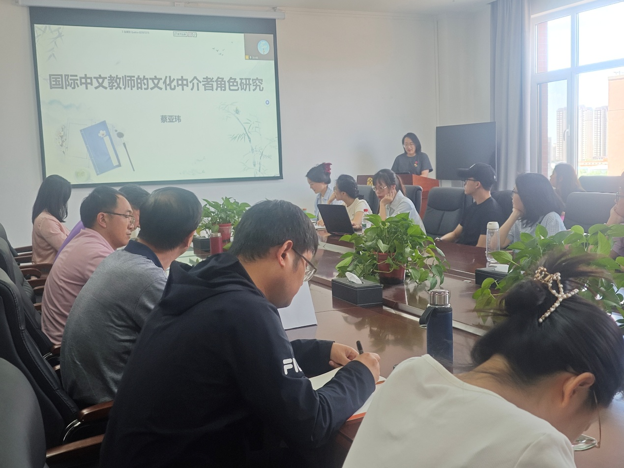 “青年教师学术沙龙”板块,蔡亚玮做了题为《国际中文教师的文化中介者角色研究》的报告。报告首先介绍了文化中介者角色的学术定位与核心内涵,其次讲到基于课堂场域的角色功能实现路径,最后在面对全球化时代的角色张力与实践困境时,探讨新时代文化中介者的能力建构与模式创新的发展路径。报告得到了评议老师的充分肯定,引发了师生们的热烈讨论。讨论主要围绕如何担当好国际中文教师文化中介者角色,如何面对文化中介者角色在不同国家不同文化教学环境下面临的特殊挑战等方面展开。