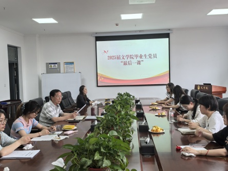 为进一步加强毕业生党员的党性修养,引导其坚定理想信念,牢记党员使命,6月17日,文学院在文理大楼515会议室召开“2025届毕业生党员‘最后一课’”,本次会议由学院党委书记张浩辰主持。