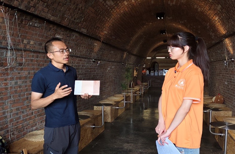 7 月13 日上午,团队专访青岚山旅游项目负责人邹佳俊。邹总介绍,青岚山曾因地处黄土高原丘陵沟壑区,面临生态脆弱、产业单一等发展困境。近年来,当地政府与企业以“生态+文旅”为突破口,将废弃窑洞改造为特色咖啡馆、民宿,引入户外体验、民俗表演等项目,走出一条农旅融合的振兴之路。“窑洞咖啡不仅是一个消费空间,更是传统文化与现 代生活的连接点。我们希望通过这种创新形式,让更多人了解青岚山的历史底蕴与发展潜力。”邹总分享道。团队成员 就文旅品牌推广、可持续发展等问题与邹总深入交流,为后续宣传方案积累素材。