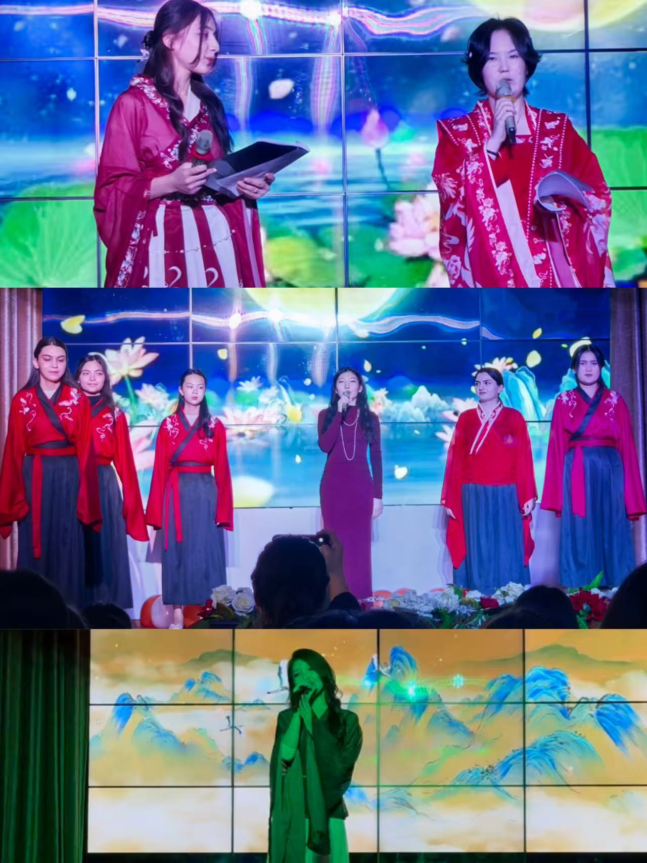 活动开场环节,文学院外派教师团队作为重要嘉宾发言,向在场人员致以中秋佳节的美好祝福。他们在发言中强调了语言学习与文化理解相辅相成的关系,指出生动有趣的文化活动能够有效激发汉语学习兴趣、深化对中文内涵的认识。随后,杜拉蒂塔拉兹国立大学的同学们呈现了精彩的中国文化节目汇演:既有深情演绎的经典歌曲《追梦人》,也有优雅展现的中国传统舞蹈《彩云追月》,更有对儒家经典《论语》中关于“和合”思想精髓篇章的引吭高诵;学生们还通过生动的话剧表演,再现了“嫦娥奔月”的神话场景,讲述了“龙传九子”等富含吉祥寓意的中华传说。多元的节目形式与丰富的文化内涵交织,将现场气氛一次次推向高潮。