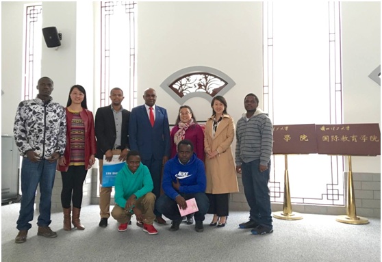 奥古斯汀•布雷格亚先生了解了在我校就读的卢旺达学生学习、生活情况,对我校教学、管理等给予了充分肯定。目前学校有卢旺达留学生8名,分别在我校攻读博士、硕士学位。