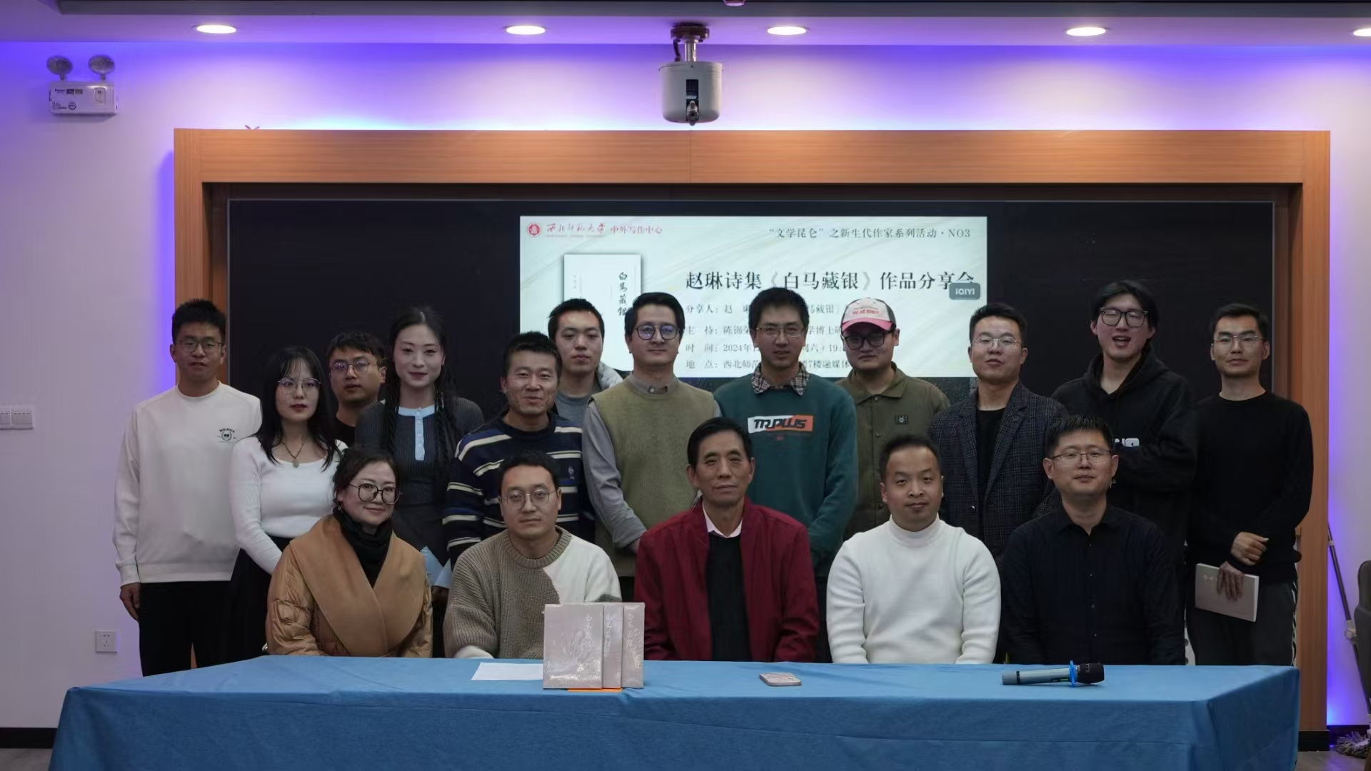 2024年12月14日,诗人赵琳诗集《白马藏银》作品分享会在甘肃兰州举办,活动由中国当代文学研究会、西北师范大学中外写作中心、西北师范大学传媒学院主办。中国当代文学研究会副会长徐兆寿,甘肃著名诗人牛庆国、刚杰·索木东、离离,西北师范大学文学院教授李生滨,西北师范大学中外写作中心副主任杨天豪,青年作家庄苓、拾谷雨、鬼鱼、树贤、谢腾飞等40余人参加了此次分享会。