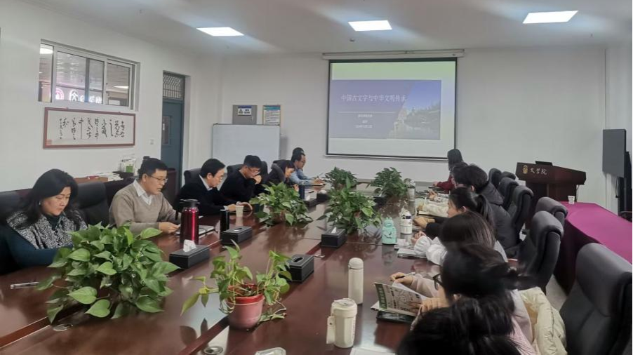 2024年12月12日下午,文学院崇文大讲堂学术讲座在文理楼515举行。本次讲座以“古文字与中华文明传承”为主题,由钱得运副院长主持,西北师范大学田河教授担任主讲人,国际中文教育23级、24级全体研究生及文学院部分教师30余人参加。
