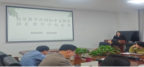 “研究生学术论坛”板块,国际中文教育专业在读硕士王岩同学结合中国古代社会与汉字教学,做了题为《基于〈中国古代社会〉的对外汉字教学方法探析》的报告;赵思艺同学的《情景教学在国际中文教育词汇教学的应用》从情景教学法的基本概念、研究现状、教学设计、预期效果四个方面介绍了情景教学法在国际中文教育词汇教的应用和特点;王小丽同学的《国际中文教育重点研究领域可发表论文的期刊杂志》详细梳理介绍了本专业适宜发表不同层次要求论文的期刊杂志,为师生针对性专业论文写作和发表提供了有益帮助。评议老师们从研究选题、核心观点、论述、行文规范与汇报PPT制作等方面提出了针对性、专业性的点评。