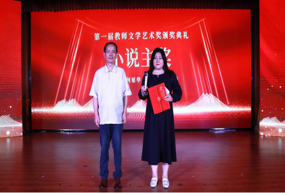 颁奖典礼在西安市育才中学交响乐中拉开帷幕。来自陕西大中学校的学生们用才艺展示表达对老师的崇敬,献礼第40个教师节,由陕西省作协副主席、鲁迅文学奖获得者阎安为何延华颁发小说主奖。