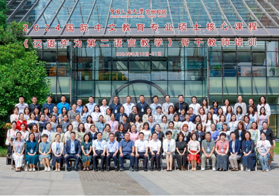 为深入贯彻落实党的二十大和党的二十届三中全会关于统筹推进教育科技人才一体改革的战略部署要求,加强国际中文教育实践创新型人才培养能力建设,进一步推动国际中文教育高层次专业人才培养模式改革创新发展,由全国国际中文教育专业学位研究生教育指导委员会(教指委)秘书处主办,中国人民大学国际文化交流学院承办的《汉语作为第二语言教学》核心课程骨干教师培训于2024年8月18日-21日在中国人民大学苏州校区举办。教育部中外语言交流合作中心副主任胡志平、教指委副主任委员刘利教授出席开班仪式并致辞。本次培训围绕学科理论与人才培养、文明互鉴与教学实践、教学动态与教学标准、文化体验与教学创新、国际传播与课程思政五个模块展开,邀请教指委副主任委员刘利教授、北京师范大学宋继华教授、中国人民大学臧峰宇教授等相关领域知名专家授课指导。来自全国67所国际中文教育专硕培养院校的84名骨干教师参训。