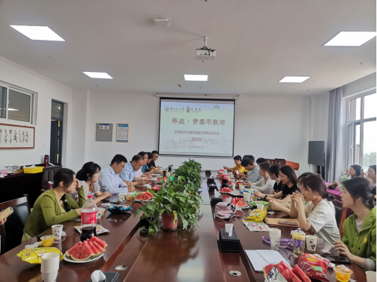 为了深入了解汉语言文学专业毕业生的需求和反馈,进一步改进教育教学工作,提升人才培养质量,文学院于2024年6月21日下午在文理大楼515会议室召开了2024届汉语言文学专业毕业生座谈交流会。学校党委常委、组织部部长、文学院院长王立宗,学院党委书记张浩辰,副院长钱得运,中文系主任贾东方,辅导员和2024届全体毕业生参加了座谈会。