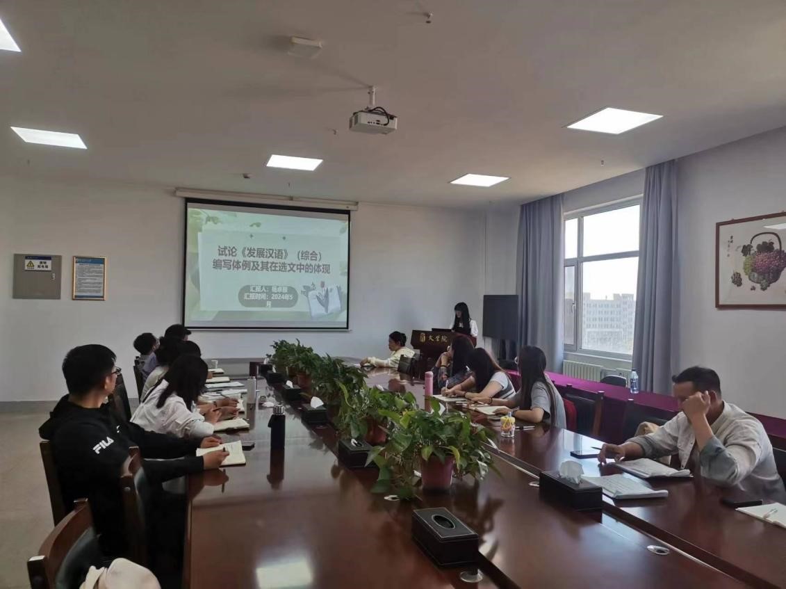 论坛由四位来自汉语国际教育专业的研究生分别做学术报告。潘家新围绕《中华思想文化术语:中华文明的重要精神标识》主题,讨论中华思想文化术语在国际中文教学中的应用。付颖讨论教材《发展汉语•初级口语Ⅰ》声韵调教学的教学路径和教学策略。杨卓雅围绕《发展汉语》(综合),从编写体例和选文体现两部分,分析总结该教材编写特点。来自土库曼斯坦的国际学生柯林顿(krime)从国际学生的视野,分析中国回族与土库曼斯坦婚礼的异同,分析其形成原由。
