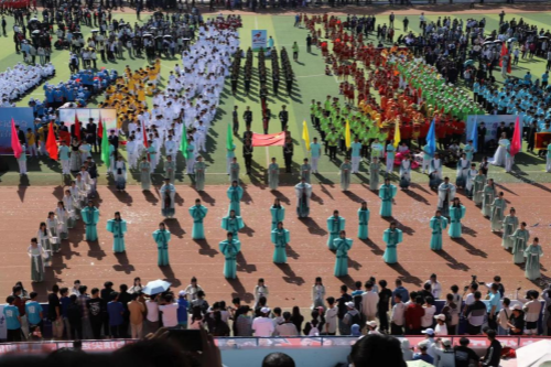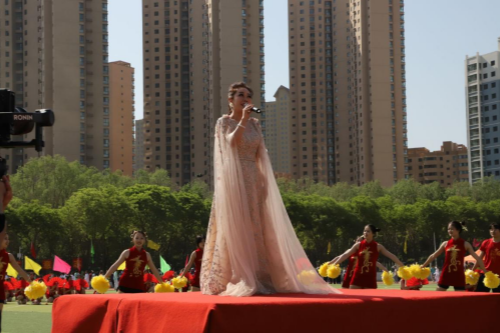 在接下来的开幕式表演中,文学院的王娟老师演唱了歌曲《花开新时代》,歌声悠扬,舞姿优美。在嘹亮动听的歌声中,拉开了本次运动会的帷幕。
