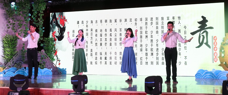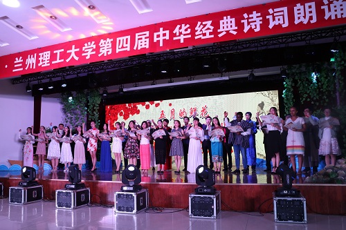 诗词传承文明,经典浸润人生。2017年5月27日晚,“五月的鲜花·兰州理工大学第四届中华经典诗词朗诵大赛”决赛暨颁奖典礼在西校区大学生活动中心隆重举行。甘肃省教育厅巡视员丁光明、学校党委副书记丁虎生,甘肃省教育厅语言文字管理处处长、省语言文字工作委员会办公室主任杨坚,中国陶渊明研究会常务理事、兰州城市学院文史学院院长高原教授,国家级播音员、甘肃省广播电影电视总台都市频道副总监、著名主持人王彤,学校办公室、宣传部、学工部、团委、易班发展中心等部门负责人,文学院国际教育学院全体教师,以及全校中外学生500余人参加了典礼。