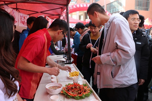 2016年12月6日中午,以“世界风·中国情”为主题的“兰州理工大学第四届国际文化节”餐饮文化展在西校区红柳广场举行。来自35个国家的留学生向全校师生展示的以各国特色美食、民族舞蹈、民族服装为主要内容的餐饮文化展。2016级汉语言本科学生展示了中国茶艺、书法、剪纸等传统文化。餐饮文化展吸引了校内1000余名师生品尝、观看。
