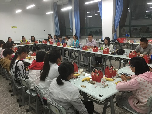 联谊会上同学们表演了歌曲演唱等节目,畅所欲言,互叙思乡之情,气氛轻松和睦,其乐融融,每位同学的脸上都洋溢着快乐的笑容。大家深切感受到,在这个特殊的日子里,有了老师的陪伴,倍感欣慰,有了同学的陪伴,倍感亲切。大家由陌生到相识,由相识到熟悉,再到亲密团结如一家,全体师生组成了一个和谐幸福大家庭。师生同心,对于2016级新生来说,这注定是一个不同寻常的中秋。