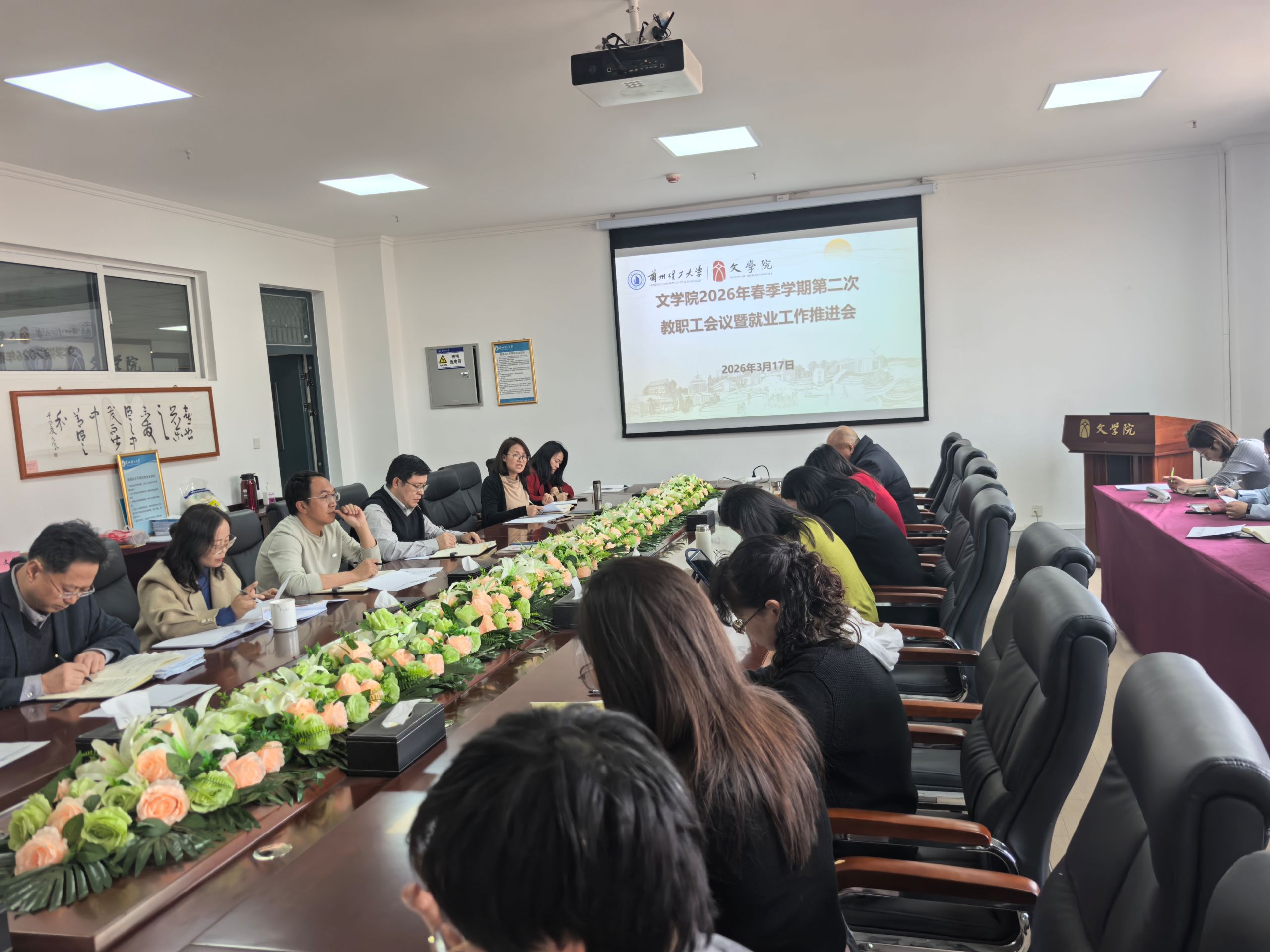 为进一步抓实抓细毕业生就业工作,3月17日,文学院召开2026届毕业生就业工作推进会,学院党委书记王祎敏主持会议,全体教师参加。