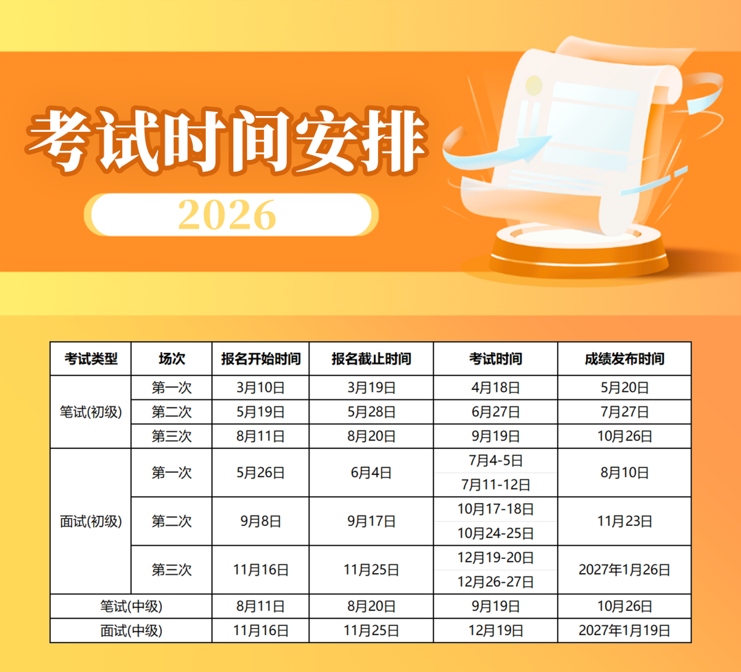 2026年国际中文教师证书考试将举办3次笔试(初级)、3次面试(初级),1次笔试(中级)、1次面试(中级)。笔试成绩合格的考生可报考相对应级别的面试,已参加笔试(旧版)成绩合格且在有效期内的考生,可依据自身实际情况和考试报名条件,自行选择报名面试(初级)或面试(中级)。具体考试日期如下: