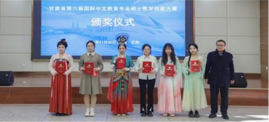 教学技能大赛分为中国选手组和留学生选手组。经过自我介绍、教学技能竞赛和中国传统才艺比拼三个环节的激烈角逐,我院国际中文教育专业硕士生杨卓雅同学获国内学生组二等奖,明英同学获国际学生组三等奖,钱得运副教授获得优秀指导教师奖,兰州理工大学获得优秀组织奖。